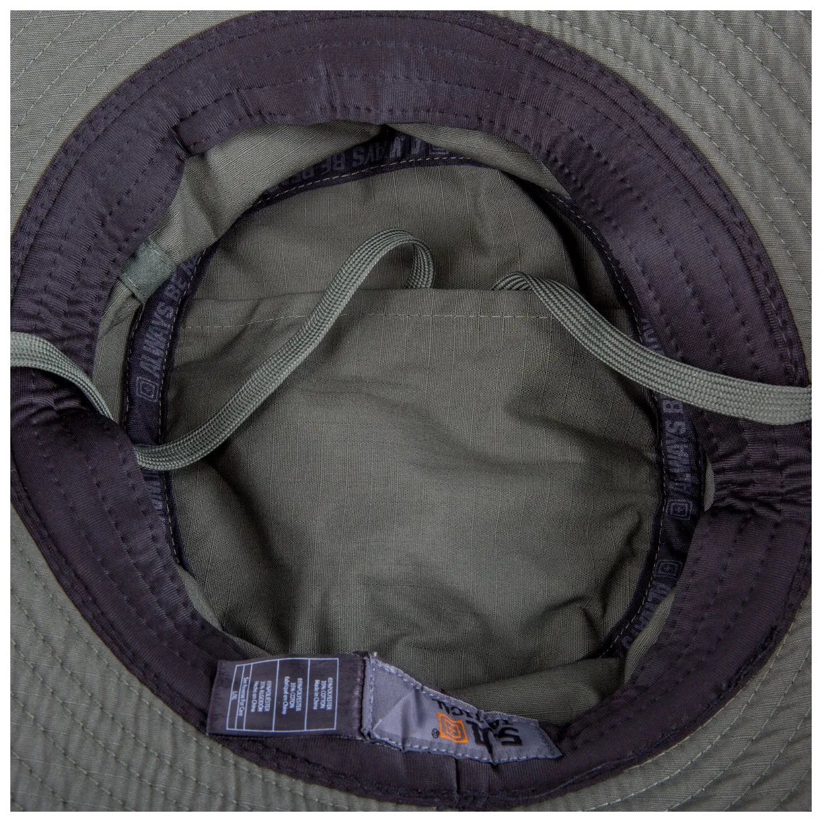 Zachowaj koncentrację, bez względu na to, jak intensywny jest upał, dzięki Boonie Hat 5.11®. Wykonany jest z lekkiej, ale wytrzymałej tkaniny poliestrowo-bawełnianej TDU® ripstop i ma otwory wentylacyjne oraz odprowadzającą pot opaskę.Wewnętrzna piankowa taśma z odprowadzającą pot dzianinąSolidna, ale elastyczna konstrukcja 4-panelowaWykończenie DWRMieszanka poliestru i bawełnyRegulowany, rurkowy ściągacz7 rzędów przeszyć na daszkuŚrodkowe, okrągłe szwy z logo 5.11®