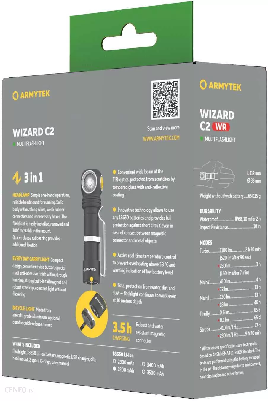 Wizard C2 WR to wszechstronny model z mocnymi czerwonymi i białymi diodami LED i imponującym w porównaniu z poprzednią wersją czasem pracy do 2 miesięcy.
