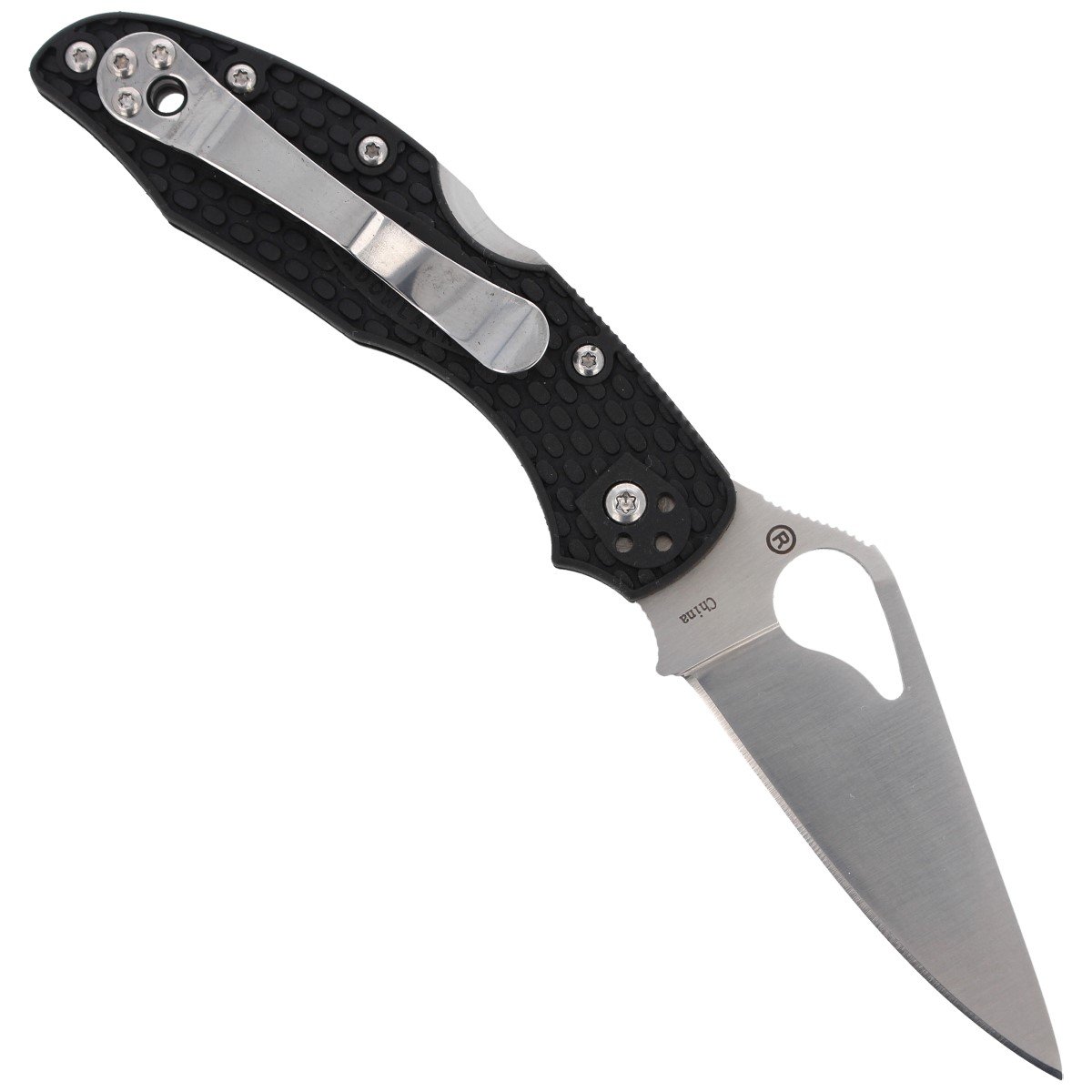 Głownia - typu Drop Point zapewnia doskonałą geometrię krawędzi tnącej przy niskim tarciu. Ostrze gładkie Plain, wyprowadzono szlifem pełnym płaskim (Full Flat Grind). Karbowany fragment grzbietu głowni, rampa (jimping) ustawia kciuk oraz daje solidne podparcie, a łukowate podcięcie pod palec wskazujący między rękojeścią a krawędzią tnącą (finger choil jimping) ułatwia operowanie folderem. Wycięcie w kształcie komety Comet-shaped (patent Spyderco) do szybkiego otwarcie klingi. Blokada głowni Back-Lock z zabezpieczeniem przed przypadkowym zwolnieniem blokady podczas mocnego chwytu, wycięcie w blokadzie projektu Davida Boye'a.