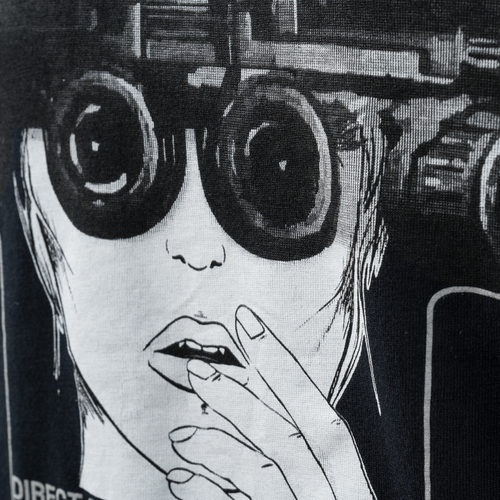 DIRECT ACTION T-shirt DA ART NVG T-shirt z pistoletem z wizerunkiem dziewczyny w hełmie z noktowizorem.