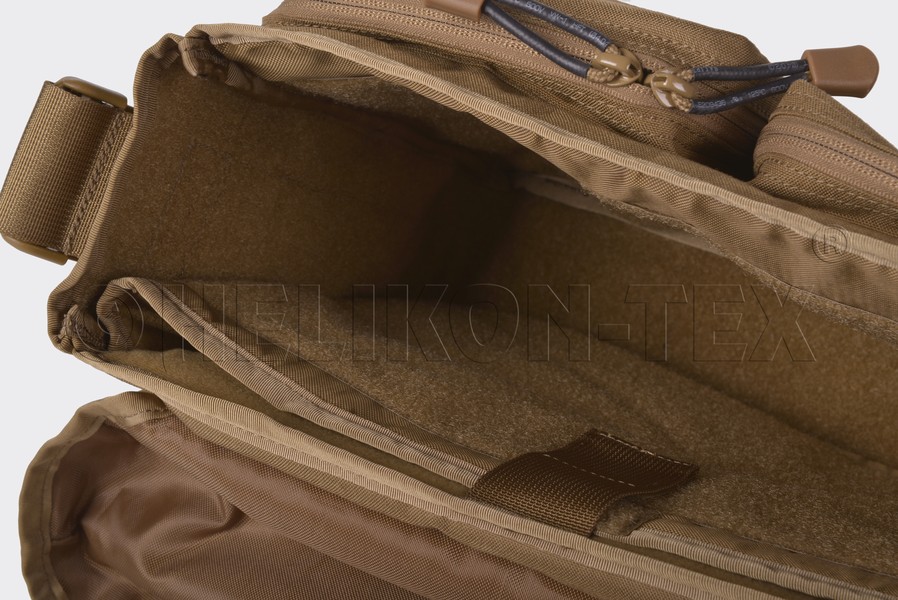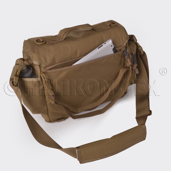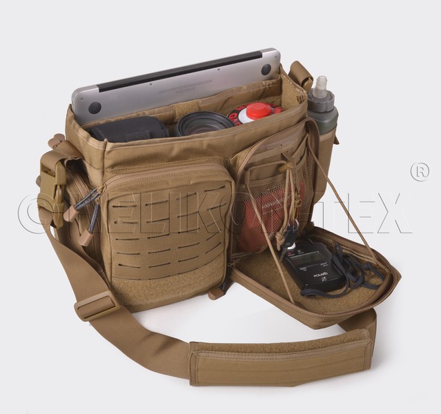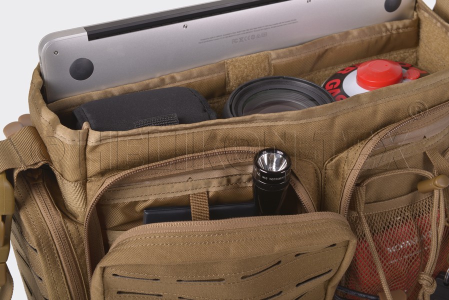 Torba Direct Action® Messenger Bag® firmy Helikon Tex. to lekka, kompaktowa i uniwersalna, średniej wielkości torba typu grab-bag. Zaprojektowana została z myślą o funkcjonariuszach służb mundurowych, jak i do codziennego użytku. Komora główna torby pokryta została w całości pętelkową częścią Velcro, co umożliwia mocowanie dodatkowego wyposażenia takiego jak kabury czy ładownice. Na tylnej ścianie tej komory znajduje się obita pianką kieszeń dedykowana do bezpiecznego przenoszenia 13" laptopa lub innych urządzeń elektronicznych. D.A. Messenger Bag® została pokryta wycinanym laserowo systemem kompatybilnym z MOLLE/PALS. Torba wyposażona jest w regulowany pasek naramienny z poduszką pokrytą materiałem antypoślizgowym.