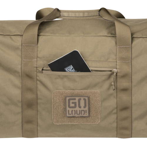 Torba Deployment Bag Small jest wykonana z wytrzymałej Cordury 500D. Ma regulowany, szeroki pasek na ramię i dwa uchwyty z taśmy wszywanej w dno na całej długości. Dzięki temu podczas użytkowania torba wytrzymuje większe obciążenia. Jest zamykana na zamek YKK umieszczony na środku. Oprócz tego są dwie zewnętrzne, płaskie kieszenie na drobne przedmioty. Wewnątrz torby naszyto dwie małe, zapinane na suwak kieszenie z siatki, tzw. mesh pockets. Na potrzeby personalizacji Deployment Bag Small ma dwa panele miękkiego rzepa naszyte po bokach. Ponadto na torbie jest zafoliowane okienko do identyfikacji. Deployment Bag Small nie ma twardego szkieletu, więc kiedy nie jest używana, można ją skompresować do małych rozmiarów. Deployment Bag Small powstała, by zaspokoić potrzebę codziennego przenoszenia wyposażenia. To wielofunkcyjność jest głównym powodem wprowadzenia tego modelu torby do oferty Direct Action.