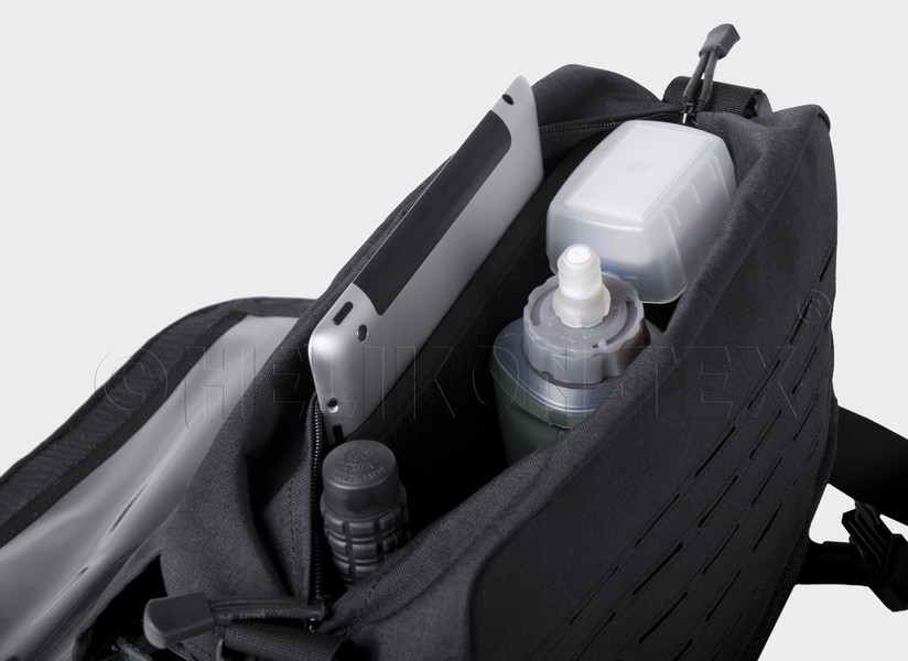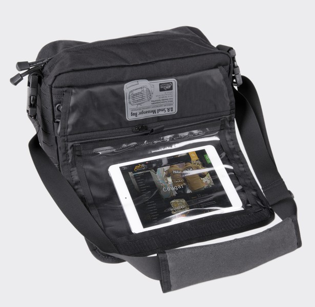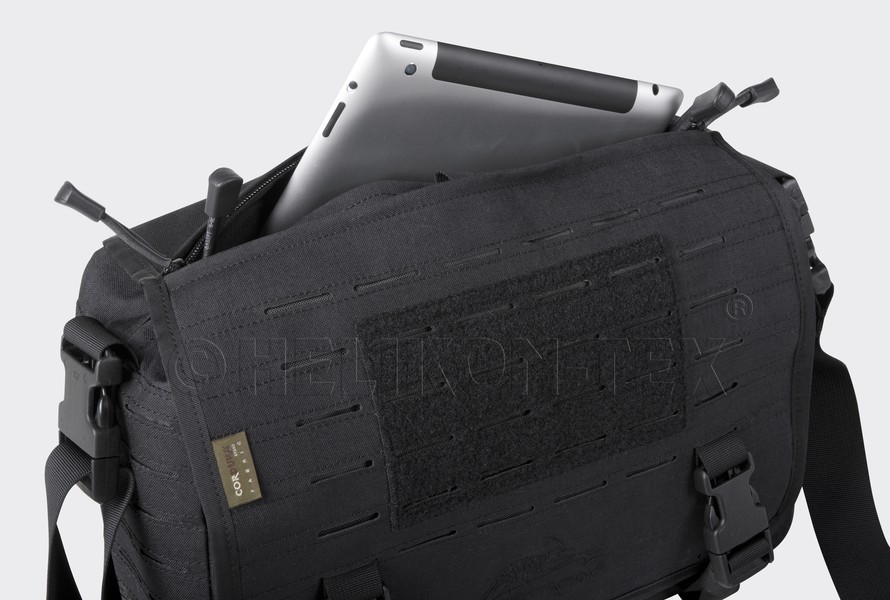 Torba Direct Action® Small Messenger Bag® firmy HELIKON Tex. to lekka, kompaktowa i uniwersalna torba typu grab-bag. Komora główna torby pokryta została w całością pętelkową częścią Velcro, co umożliwia mocowanie dodatkowego wyposażenia takiego jak kabury czy ładownice. Na tylnej ścianie tej komory znajduje się obita pianką kieszeń dedykowana do bezpiecznego przenoszenia 11" laptopa lub innych urządzeń elektronicznych. D.A. Small Messenger Bag® została pokryta wycinanym laserowo systemem kompatybilnym z MOLLE/PALS. Torba wyposażona jest w regulowany pasek naramienny z poduszką pokrytą materiałem antypoślizgowym.