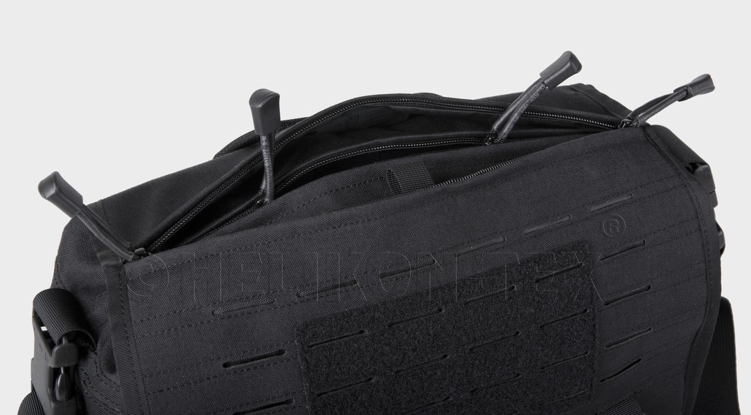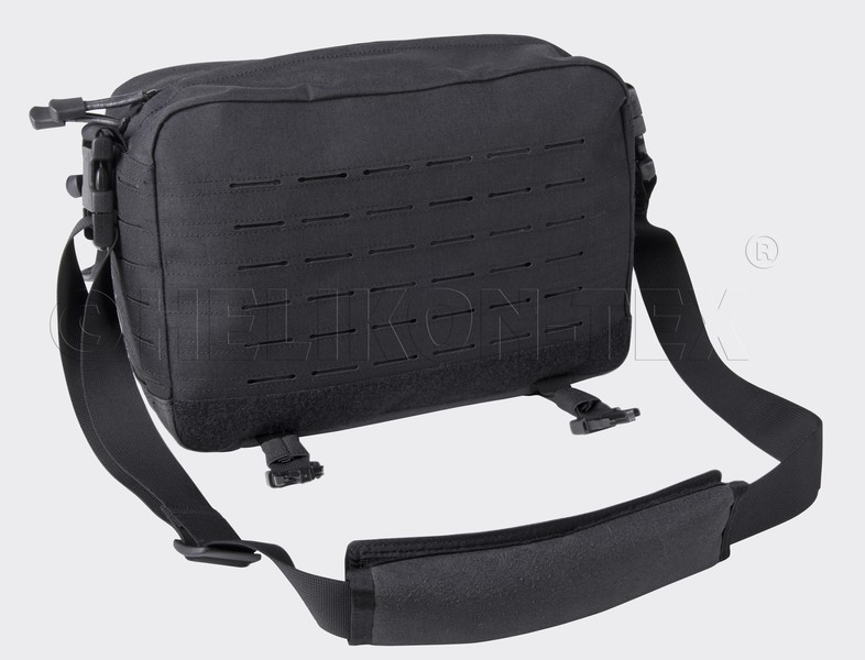Torba Direct Action® Small Messenger Bag® firmy HELIKON Tex. to lekka, kompaktowa i uniwersalna torba typu grab-bag. Komora główna torby pokryta została w całością pętelkową częścią Velcro, co umożliwia mocowanie dodatkowego wyposażenia takiego jak kabury czy ładownice. Na tylnej ścianie tej komory znajduje się obita pianką kieszeń dedykowana do bezpiecznego przenoszenia 11" laptopa lub innych urządzeń elektronicznych. D.A. Small Messenger Bag® została pokryta wycinanym laserowo systemem kompatybilnym z MOLLE/PALS. Torba wyposażona jest w regulowany pasek naramienny z poduszką pokrytą materiałem antypoślizgowym.