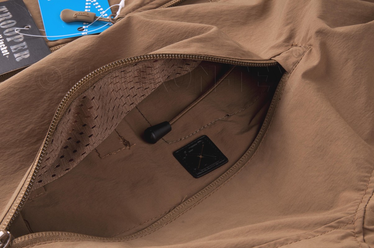 SoftShell Trooper firmy Helikon Tex. to bardzo lekka warstwa zewnętrzna, chroniąca użytkownika przed umiarkowanym deszczem, śniegiem i wiatrem, utrzymując przy tym wysoki poziom oddychalności. Ukryty w kołnierzu kaptur, może być błyskawicznie wydobyty na zewnątrz i dostosowany do kształtu głowy użytkownika i noszonych urządzeń nagłownych. Zestaw pojemnych kieszeni pomieści istotny ekwipunek. Anatomiczny, praktyczny krój współpracuje z oporządzeniem taktycznym podczas wysokiej aktywności fizycznej. Trooper bardzo łatwo poddaje się kompresji, idealna do przenoszenia w kieszeni cargo, plecaku.