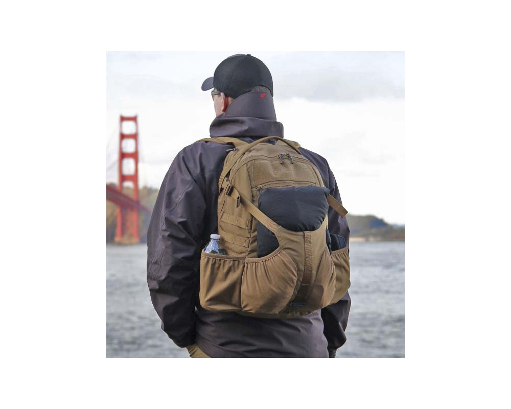 Plecak Raider® firmy Helikon-Tex. to zaawansowany plecak, który sprawdzi się w każdej sytuacji - od EDC, przez krótkie wędrówki, aż po sytuacje bojowe. Projektanci skupili się w tym modelu na wygodnym, łatwym i szybkim dostępie do przenoszonych w nim przedmiotów. W głównej komorze znajdują: się panel velcro do dopięcia insertów - kompatybilny z naszym Versatile Insert System®, kieszeń zakończona elastyczną taśmą oraz kieszeń na suwak. Kieszeń organizacyjna na drobne wyposażenie znajduje się na szczycie plecaka i nie wymaga otwierania głównej komory. Na froncie znajduje się miękko wyściełana kieszeń na okulary lub elektronikę, a do paneli velcro można wpiąć elementy kompatybilne z naszym systemem insertów. Po bokach plecaka umieszczone zostały dwie otwarte kieszenie na kurtkę lub manierkę. Ciekawostką jest przedni panel tzw. Beaver tail, pod który wejdzie kask rowerowy, wspinaczkowy czy hełm bojowy. Gdy plecak używany jest jako EDC i nie chcemy odpinać za każdym razem klamer od panelu można go wygodnie zwinąć i zabezpieczyć. Plecak posiada wygodne, profilowane szelki, usztywniane plecy, pokrowiec przeciwdeszczowy oraz pas biodrowy, który w razie konieczności można schować.
