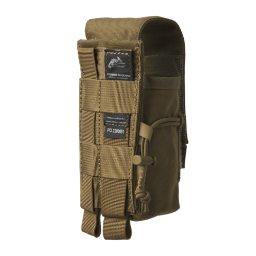 Kieszeń do przenoszenia granatów dymnych Kieszeń została tak zaprojektowana, żeby bezpiecznie przenosić granaty dymne typu M18 oraz inne o podobnych wymiarach. Kieszeń zamykana jest za pomocą prostej klapy rzepem zakończonej antypoślizgowym uchwytem. Klapa ma możliwość regulacji wysokości za pośrednictwem rzepa, co pozwala na dopasowanie jej do granatów różnej wysokości. Dodatkowo kieszeń wyposażona jest w elastyczny ściągacz ze stoperem regulowanym jedną ręką, pozwalający dodatkowo ustabilizować przenoszone przedmioty. Kieszeń montowana jest za pomocą systemu modułowego zgodnego z systemem MOLLE/PALS. Cechy: Mieści większość standardowych granatów dymnych typu M18 i podobnych Klapa zamykana na rzep wyposażona w antypoślizgowy uchwyt Otwór odpływowy w dnie