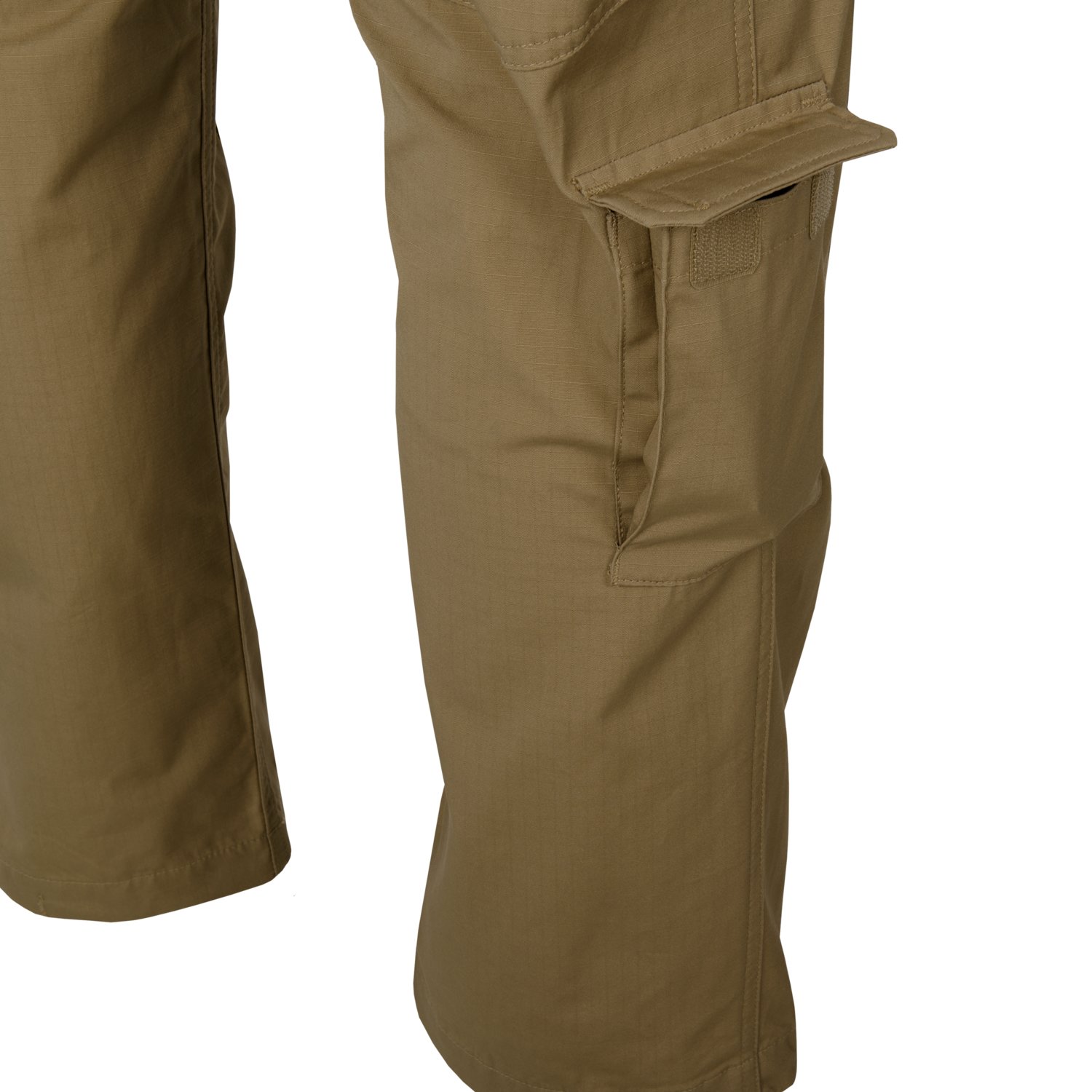 Dwie kieszenie udowe z klapkami velcro i zamknięciem na guzik, wewnętrznymi kieszeniami i elastycznymi taśmami na magazynki