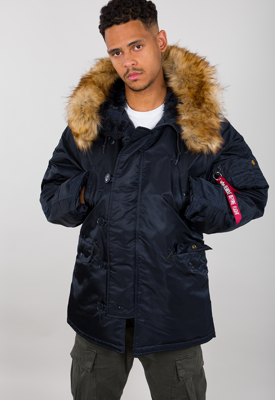 Kurtka Alpha Industries N3B to ponadczasowy model na zimę, który był produkowany od lat pięćdziesiątych dla amerykańskiego wojska. Wysoka jakość zastosowanych materiałów stanowi gwarancję udanego zakupu. Kurtka posiada kaptur obszyty futerkiem, który jest odpinany, posiada z zewnątrz pięć kieszeni - cztery przednie są zapinane są na napy, zaś klasyczna kieszonka na rękawie na suwak. Rękawy kurtki posiadają schowane ściągacze, zapobiegające przedostawaniu się zimnego powietrza do wnętrza. W środku praktyczna kieszonka na drobiazgi.