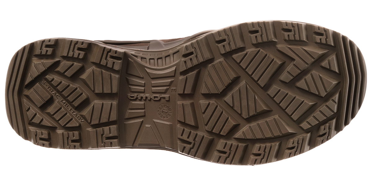 Właściwości nowej podeszwy LOWA® X-TRAC MILITARY:- Podeszwa spełnia najwyższe standardy antypoślizgowości. Ochrona przed poślizgiem zależy przede wszystkim od konstrukcji i mieszanki gumowej podeszwy zewnętrznej. But zapewnia optymalną ochronę przed poślizgiem na śliskich, mokrych i zaolejonych nawierzchniach, a także dobrą przyczepność w terenie.