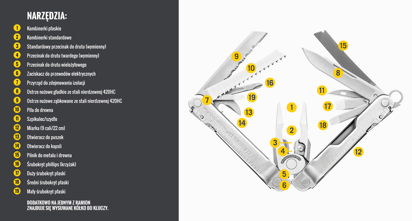 Leatherman Super Tool 300 to jeden z najbardziej rozbudowanych modeli, w którym znajdą się liczne elementy przydatne dla każdego, kto potrzebuje wszechstronnego narzędzia.