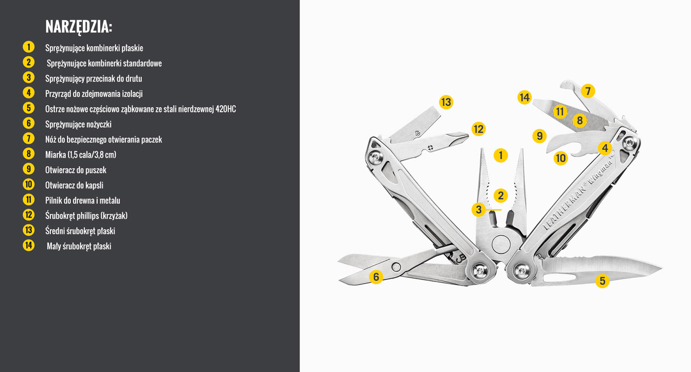 W komplecie znajduje się kabura z nylonu oraz sprężysty klips, dzięki któremu możemy przyczepić multitoola do pasa.