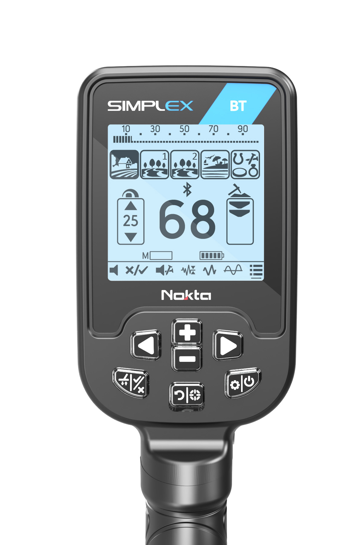 Nokta SIMPLEX BT jest w prostej linii następcą najlepiej sprzedającego się na świecie w ostatnich latach poprzednika czyli Nokta Simplex+. W stosunku do poprzednika posiada wyższą częstotliwość pracy - 15 kHz i współpracę bezprzewodową ze słuchawkami Bluetooth. Z nowych rozwiązań posiada funkcję Iron Off i Ground Suppressor - która ma za zadanie ułatwić poszukiwania szczególnie mniej zaawansowanym. Konstrukcyjnie został wyposażony w nowy, lżejszy podłokietnik i dolną część sztycy w włókna karbonowego co obniża jego wagę i poprawia stabilność. Jeśli posiadasz już Simplex+ i myślisz o wymianie detektora na bardziej zaawansowany to znacznie lepszym rozwiązaniem jest zakup SIMPLEX Ultra lub SIMPLEX Ultra WHP, a najlepiej The Legend które to wprowadzają znacznie więcej zmian i możliwości w stosunku do Simplex+ niż SIMPLEX BT. Simplex Lite posiada znacznie mniej możliwości i jest kierowany do początkujących poszukiwaczy.