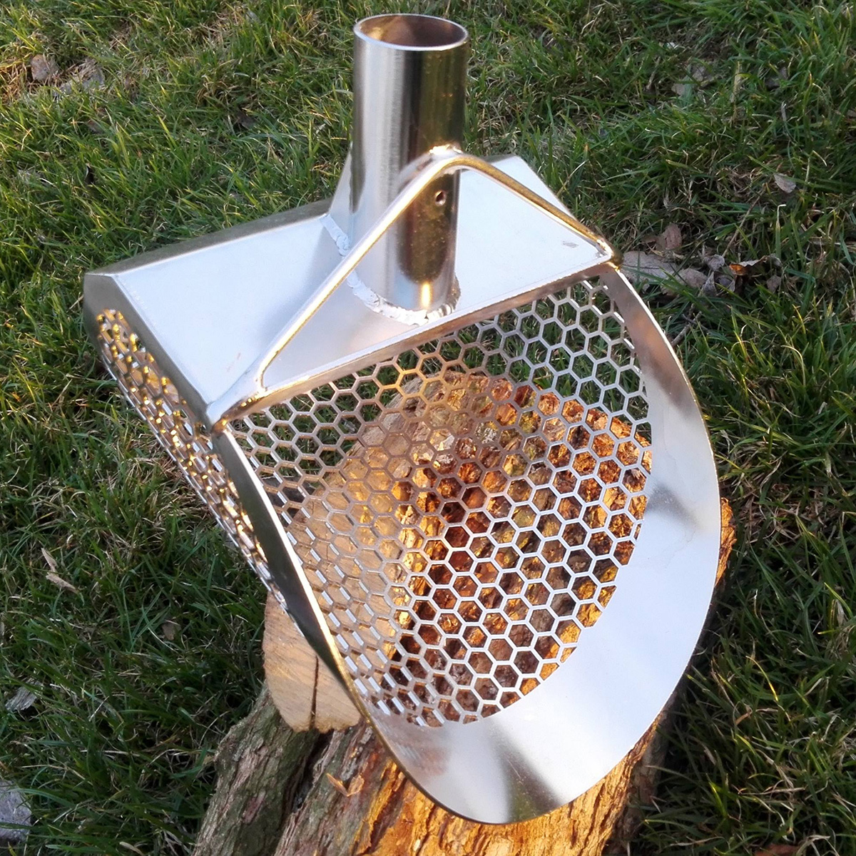 Jest to duże sito o walnym wykończeniu kosza i otworach hexagonalnych.