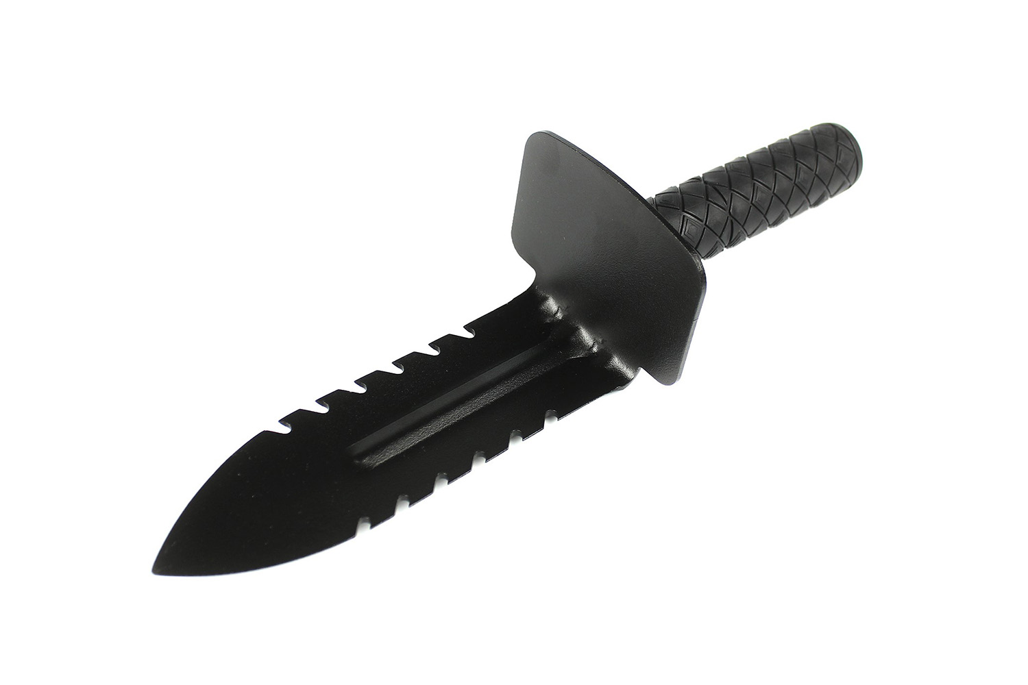 Nożo-łopatka Swagier Scoop to wielofunkcyjne narzędzie łączące w sobie dwa narzędzia: nóż i niewielka łopatka. Jest szczególnie przydatna jako uzupełnienie ekwipunku każdego poszukiwacza posługującego się nie tylko detektorem metali. Specjalnie zaprojektowana głownia z nacięciami po obu stronach ułatwia wbijanie nożo-łopatki w glebę oraz cięcie resztek roślin, łodyg czy niezbyt grubych korzeni. Szeroki jelec gwarantuje odpowiednie zabezpieczeni dłoni a gumowana nakładka na uchwyt zapewnia odpowiedni i stabilny chwyt narzędzia.