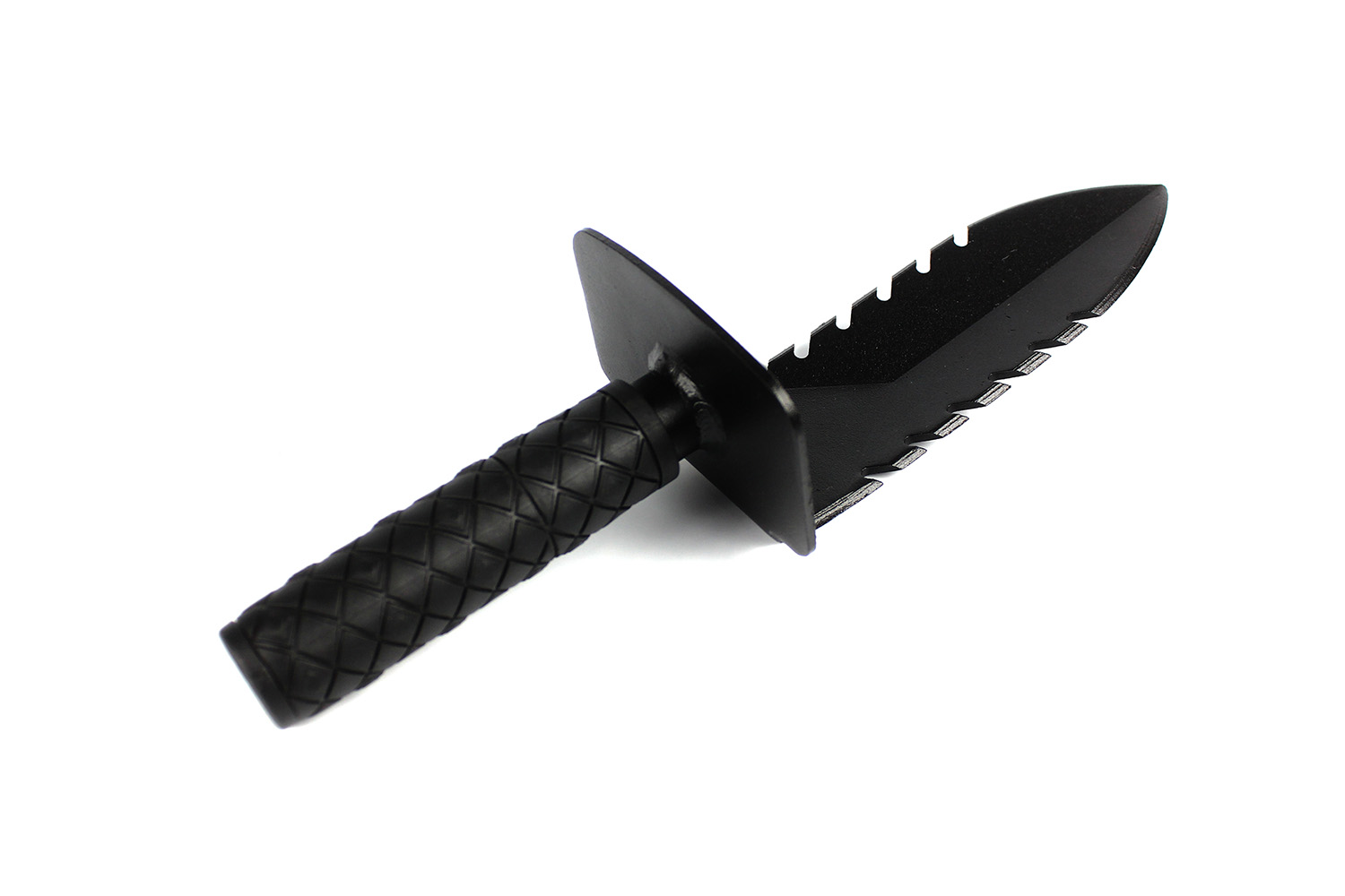 Nożo-łopatka Swagier Scoop to wielofunkcyjne narzędzie łączące w sobie dwa narzędzia: nóż i niewielka łopatka. Jest szczególnie przydatna jako uzupełnienie ekwipunku każdego poszukiwacza posługującego się nie tylko detektorem metali. Specjalnie zaprojektowana głownia z nacięciami po obu stronach ułatwia wbijanie nożo-łopatki w glebę oraz cięcie resztek roślin, łodyg czy niezbyt grubych korzeni. Szeroki jelec gwarantuje odpowiednie zabezpieczeni dłoni a gumowana nakładka na uchwyt zapewnia odpowiedni i stabilny chwyt narzędzia.