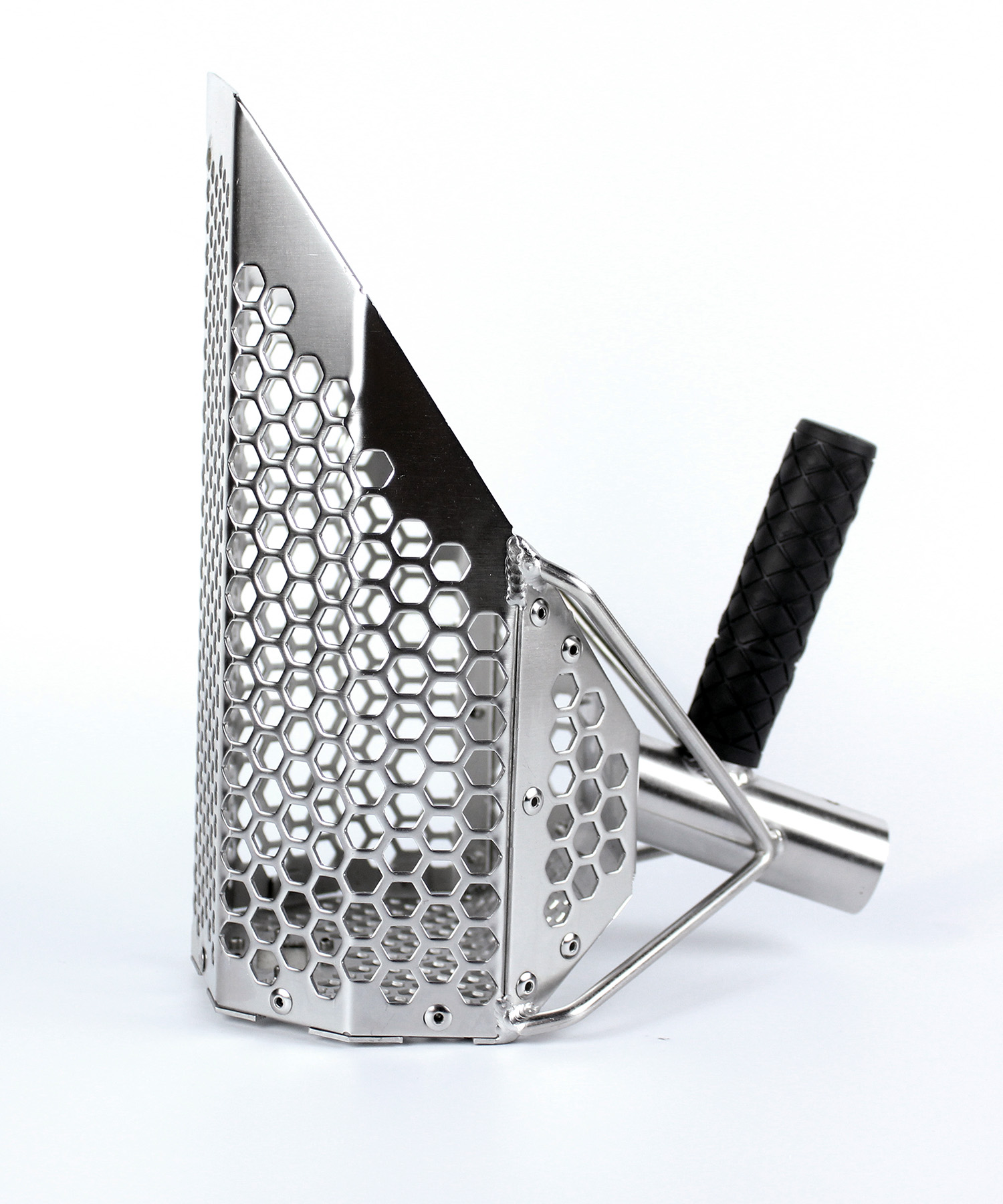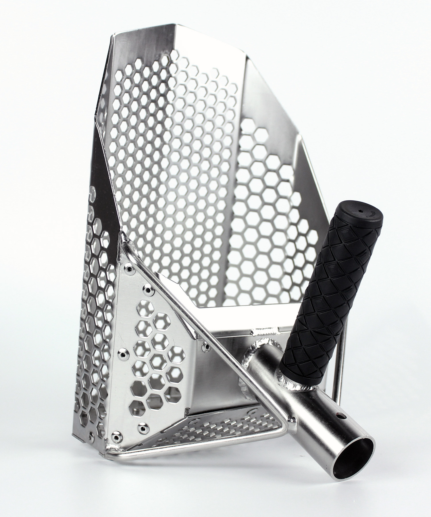 Sito Swagier Scoop V10 to bardzo wygodne w użyciu duże sito do przesiewania piasku na plażach, lub wszelkiego rodzaju akwenach wodnych. Jest przydatne jako uzupełnienie ekwipunku każdego poszukiwacza posługującego się nie tylko detektorem metali szczególnie w trakcie poszukiwań wodnych lub plażowych. Otwory o średnicy 7mm oraz 10mm świetnie radzą sobie z przesiewaniem piachu a ich sześciokątna budowa ułatwia znalezienie drobnych przedmiotów a przede wszystkim łańcuszków. Gumowana nakładka na uchwyt zapewnia odpowiedni i stabilny chwyt narzędzia. Zainstalowany magnes neodymowy ułatwia zatrzymanie w sicie przedmiotów stalowych.