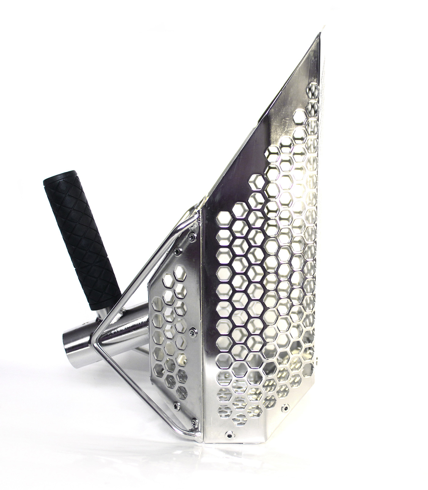 Sito Swagier Scoop V6 to bardzo wygodne w użyciu duże sito do przesiewania piasku na plażach, lub wszelkiego rodzaju akwenach wodnych. Jest przydatne jako uzupełnienie ekwipunku każdego poszukiwacza posługującego się nie tylko detektorem metali szczególnie w trakcie poszukiwań wodnych lub plażowych. Otwory o średnicy 7mm oraz 10mm świetnie radzą sobie z przesiewaniem piachu a ich sześciokątna budowa ułatwia znalezienie drobnych przedmiotów a przede wszystkim łańcuszków. Gumowana nakładka na uchwyt zapewnia odpowiedni i stabilny chwyt narzędzia.