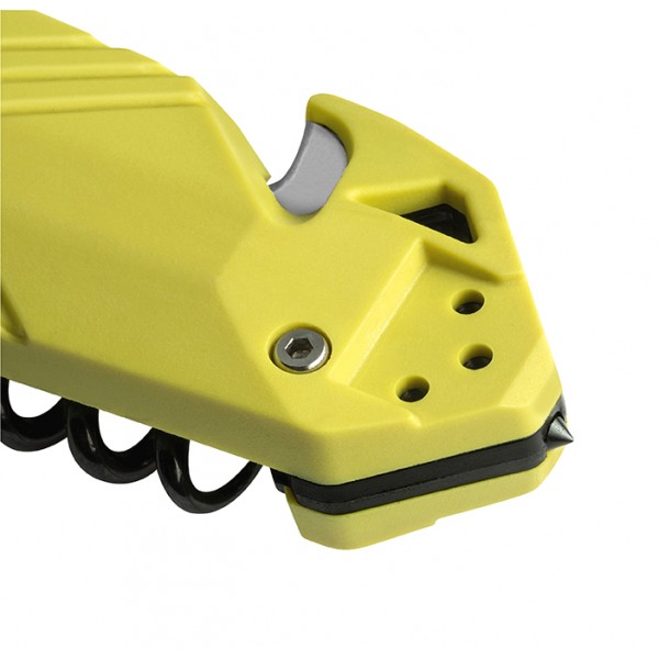 Doskonale odporne na korozję ostrze wykonane jest z Nitroxu, którego krawędź tnąca posiada ząbki gładkie lub mieszane gładkie. CAC ma również wybijak do szyb, korkociąg i dwustronny zaczep do paska. To prawdziwy koncentrat wszystkich zaawansowanych technologii, jakich można oczekiwać od noża operacyjnego. Rękojeść wykonana jest z polimeru PA6 z dodatkiem włókna szklanego lub G10. Te płytki są przykręcone do mechaniki za pomocą śrub ze stali nierdzewnej, z których jedna sprytnie mieści ostrze tnące pasek. To zakrzywione i wymienne ostrze jest przeznaczone do przecinania taśm, lin i pasów bezpieczeństwa w celu ułatwienia wyciągania w razie wypadku.