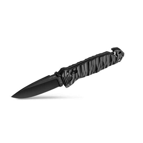 Doskonale odporne na korozję ostrze wykonane jest z Nitroxu, którego krawędź tnąca posiada ząbki gładkie lub mieszane gładkie. CAC ma również wybijak do szyb, korkociąg i dwustronny zaczep do paska. To prawdziwy koncentrat wszystkich zaawansowanych technologii, jakich można oczekiwać od noża operacyjnego. Rękojeść wykonana jest z polimeru PA6 z dodatkiem włókna szklanego lub G10. Te płytki są przykręcone do mechaniki za pomocą śrub ze stali nierdzewnej, z których jedna sprytnie mieści ostrze tnące pasek. To zakrzywione i wymienne ostrze jest przeznaczone do przecinania taśm, lin i pasów bezpieczeństwa w celu ułatwienia wyciągania w razie wypadku.