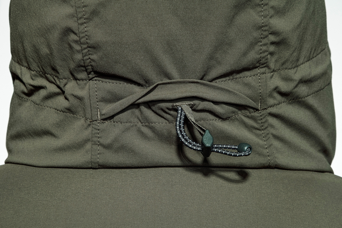 Zamek główny to produkt renomowanej firmy YKK z wewnętrznym zabezpieczeniem przeciwwiatrowym. Dół kurtki regulowany jest poprzez system E/String.