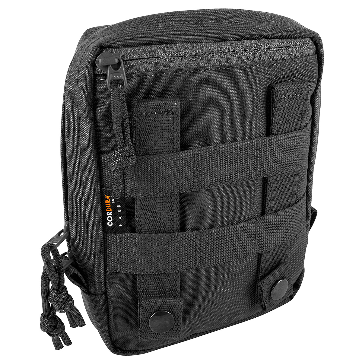 Tasmanian Tiger Tac Pouch 5 to uniwersalna kieszeń, zamykana dwukierunkowym zamkiem błyskawicznym, która sprawdzi się również jako apteczka, kompatybilna z systemem MOLLE/PALS, dzięki czemu można ją przymocować do plecaków, pasów lub innych elementów ekwipunku., wyposażona w pokrowiec przeciwdeszczowy oraz taśmy systemu PALS, na jednej z nich naszyto panel Velcro, który umożliwia przymocowanie naszywek, itp.