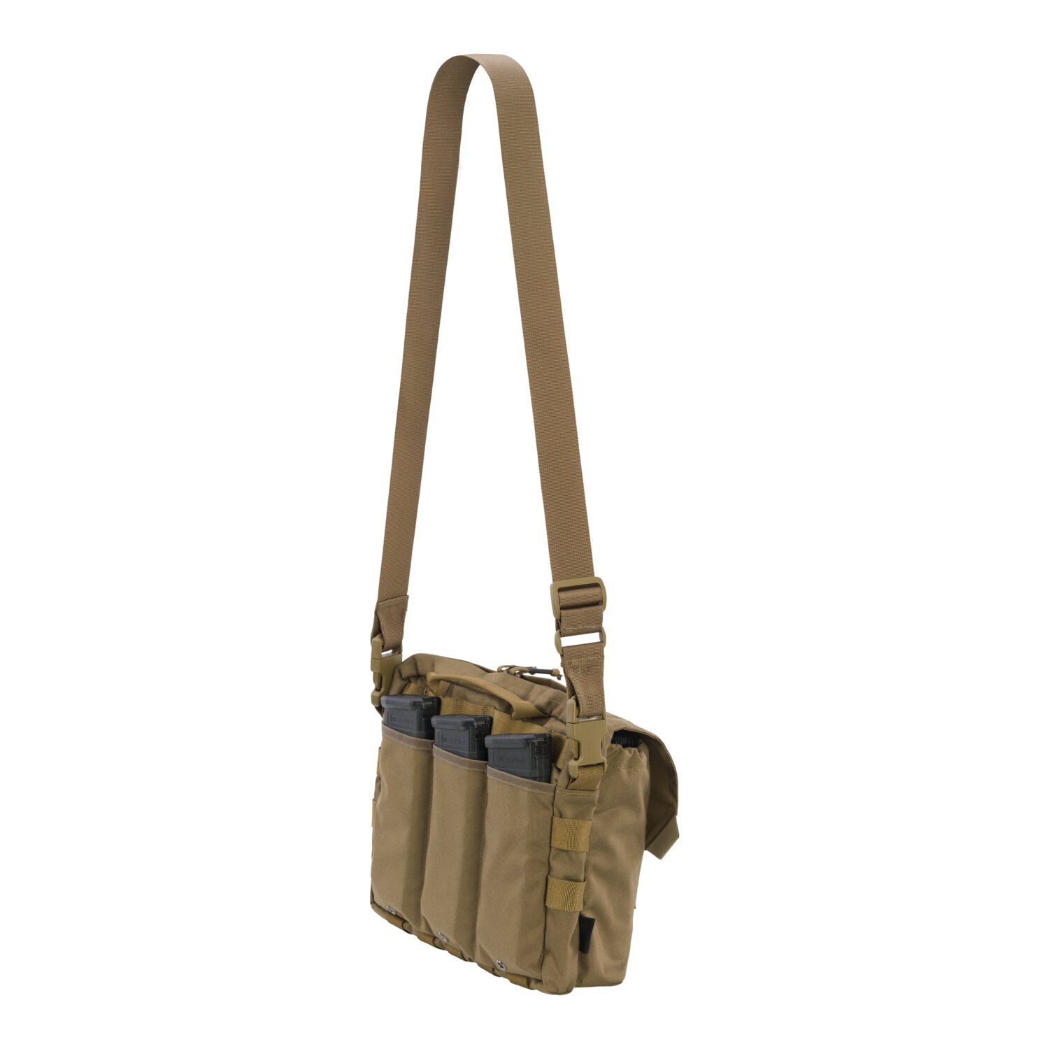 Mała torba z dużym potencjałem Uniwersalna, jednodniowa torba taktyczna na ramię. Kształtem nawiązuje do używanej w armii USA od lat 60 XX w. torby do przenoszenia miny przeciwpiechotnej M18A1 zwanej Claymore. Uzupełnia naszą ofertę toreb o szerszym zastosowaniu, nie tylko do bushcraftu i turystyki, lecz także innych aktywności outdoorowych lub miejskich. Rozwiązania zastosowane w torbie Claymore docenią też użytkownicy broni palnej, ponieważ do uniwersalnych płaskich kieszeni idealnie pasują magazynki AR/AK. Solidne materiały pod ręką Dzięki zastosowaniu Cordury 500D, znacznie wytrzymalszej od tradycyjnego nylonu i poliestru, torba Claymore jest dużo odporniejsza na przetarcia. Spokojnie można wybrać się z nią do miasta i używać codziennie np. jeżdżąc do pracy lub na uczelnię. Nasz Claymore sprawdzi się również jako torba taktyczna, w której ekwipunek będzie bezpieczny nawet przy przechodzeniu przez gęsty las lub między skałami. Zapięcie na rzep i zatrzaski ochroni drobiazgi przed wypadnięciem. Dobrze zorganizowane miejsce By zwiększyć potencjał torby Claymore, wyposażyliśmy ją w czternaście kieszeni. Dzięki temu może być wykorzystywana jako torba typu go bag, mieszcząc zapasową amunicję, manierkę i lekką kurtkę (np. Windrunner lub Tramontane). Użytkownikom, którzy chcą być zawsze gotowi, może posłużyć za większy organizer EDC. Torba Claymore pomieści np. litrową butelkę, składaną piłę, małą siekierę, etc. Uzupełnia naszą ofertę wypełniając lukę między ośmiolitrową torbą Haversack a mniej pojemną, dwuipółlitrową Essential Kit Bag. Na zewnątrz – wygoda i dostępność W sytuacji awaryjnej może nie być czasu na przeglądanie bagażu. Dlatego zewnętrzne kieszenie rozmieściliśmy tak, by dostęp do nich był jak najszybszy. Z przodu torba Claymore ma dwie duże naszyte kieszenie zapinane na rzepy i (w razie potrzeby) na zatrzaski. W każdej z nich są po dwie płaskie kieszonki, skrojone idealnie pod magazynki AR/AK. Chcąc wykorzystać tył torby, również tam umieściliśmy trzy kieszonki. Razem daje to aż dziewięć kieszeni, z czego siedem płaskich i dwie naszyte. Wewnątrz – bezpieczeństwo i porządek Zabezpieczona zamkiem błyskawicznym prostokątna przegroda torby dzieli się na cztery płaskie kieszenie i wolną przestrzeń, która pomieści np. notatnik lub tablet. Oprócz tego w tylnej ściance jest jeszcze jedna, zasuwana kieszeń na cenne przedmioty, np. zabezpieczone dokumenty lub pieniądze. Łącznie pięć kieszeni i wolna przestrzeń między nimi. Klucze i inne drobiazgi można powiesić na pętelkach tak, by były dostępne od ręki. Torba na ramię pełna historii Jednym z najbardziej charakterystycznych elementów ekwipunku żołnierza armii USA w czasie wojny w Wietnamie był Bandolier M7. To zapinana na zatrzaski torba militarna z dwiema kieszeniami. W jednej przenoszono minę przeciwpiechotną M18A1 nazywaną Claymore (jak duży szkocki miecz). W drugiej mieściło się urządzenie odpalające M57 i tester zasilania. Po detonacji każdej miny żołnierzowi zostawała jedna taka torba, którą z czasem zaczęto nazywać po prostu claymore bag i wykorzystywać do noszenia ekwipunku. Była przerabiana, używano jej również po zakończeniu służby. Torba wojskowa na ramię stała się na tyle popularna, że zaczęto produkować jej cywilne odpowiedniki.